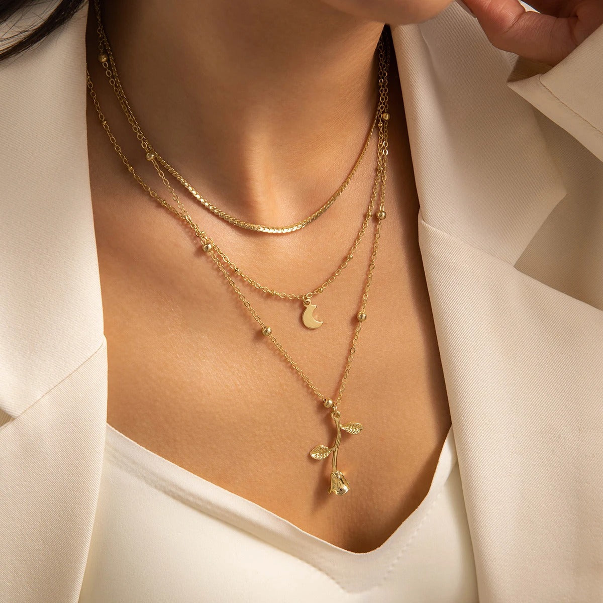 Trio Fleur de Rose – Collier triple à l’élégance florale
